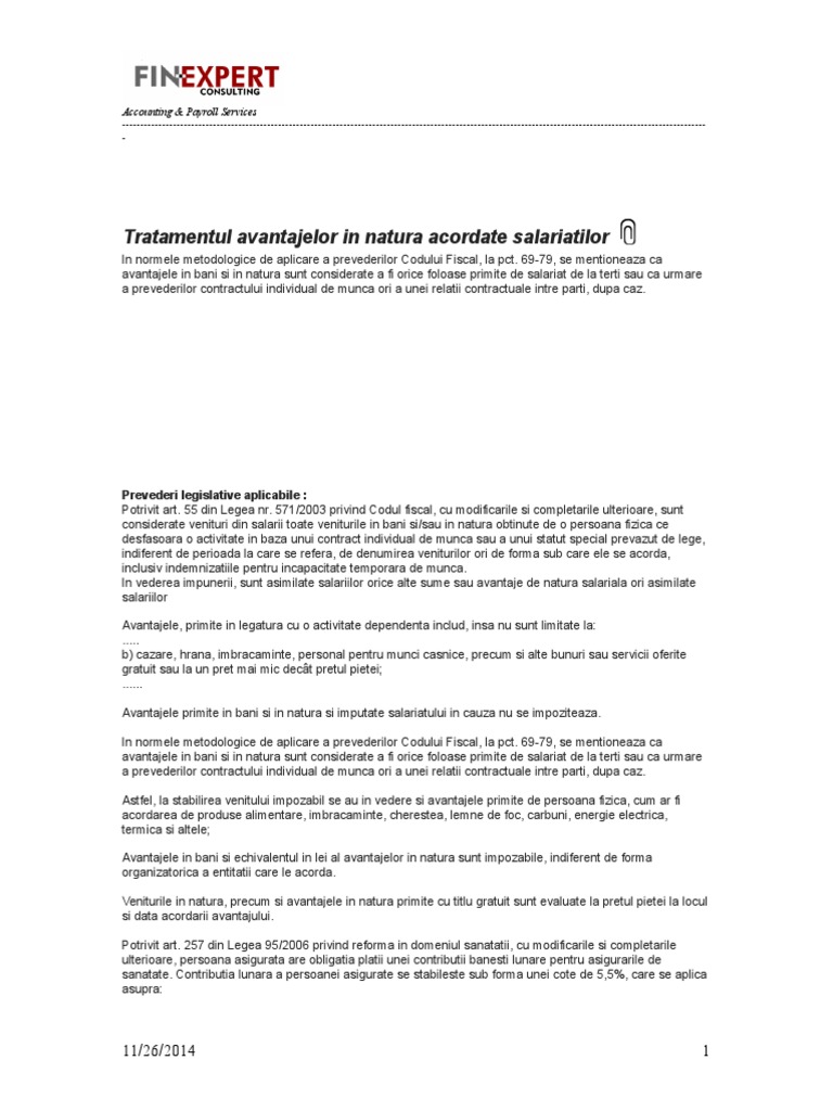 Avantaje In Natura Acordate Salariatilor 2018