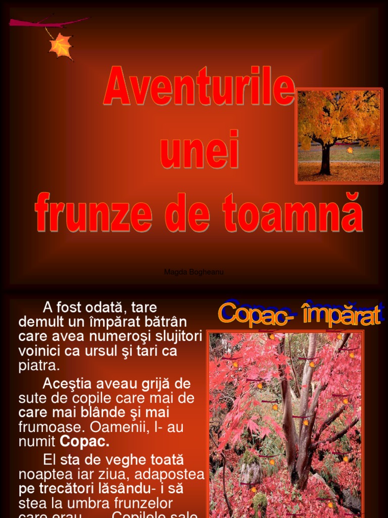 Adunati mai multe frunze avand grija sa nu fie rupte si prea uscate vei face rost si de niste betisoare de la inghetata pe bat dar si niste seturi de ochisori si gurite ce vor fi lipite pe suprafata frunzelor ideale sunt seturile de. Aventurile unei frunze de toamnă publicat de 22 octombrie 2016 26 martie 2017 de centruleminescubm a fost odată tare demult un împărat bătrân care avea numeroși slujitori voinici ca ursul și tari ca piatra. Vezi cele mai relevante poze despre frunze toamna si citeste cele mai bune articole de pe acasa ro pe aceasta tema joaca te printre frunze bucura te de soarele tomnatec si simte parfumul frunzelor care iti zambesc pentru ultima data anul acesta echinoctiul de toamna va mai pica pe 24 septembrie abia in anul 2303.