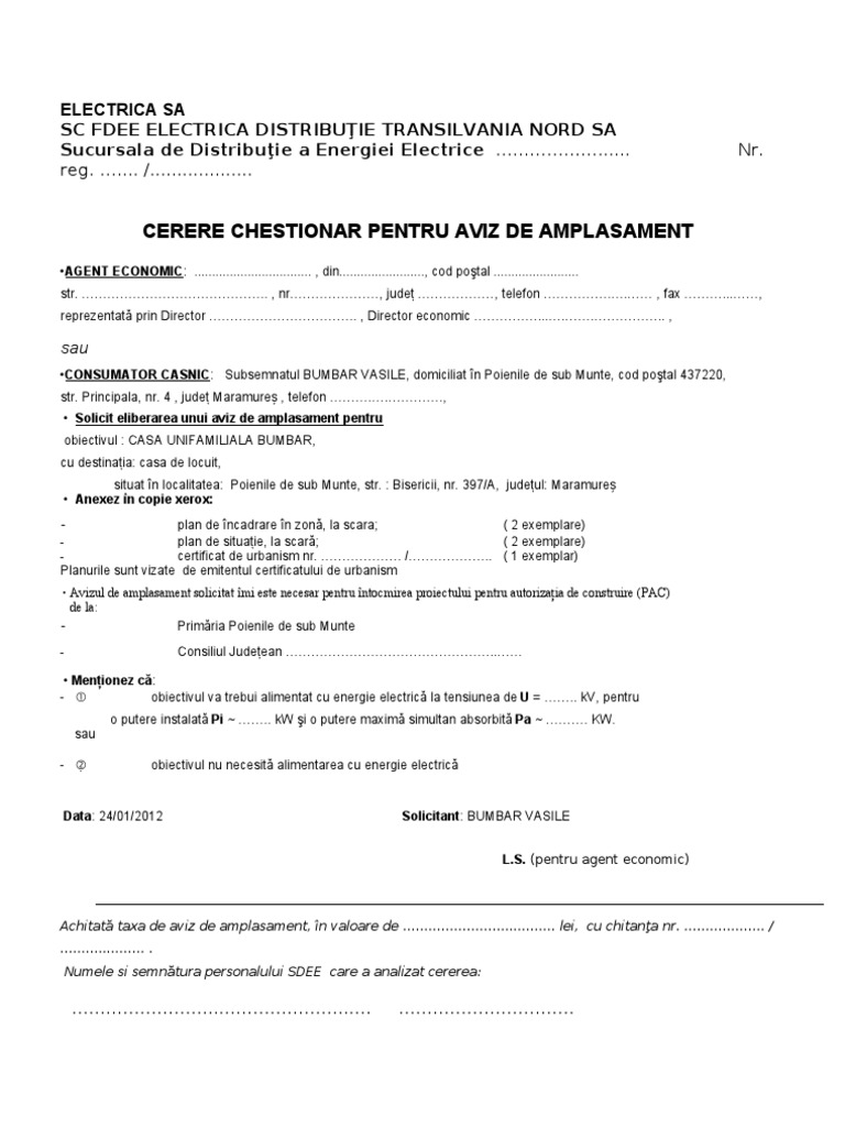 Aviz Electrica Pentru Autorizatie Constructie