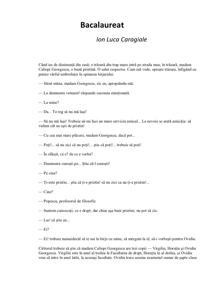 Bacalaureat de ion luca caragiale. Home pentru copii povești pentru copii ion luca caragiale bacalaureat de i l caragiale. In trasura madam caliopi georgescu o buna prietina. In trasura madam caliopi georgescu o buna prietina. O trăsură din trap mare intră pe strada mea.