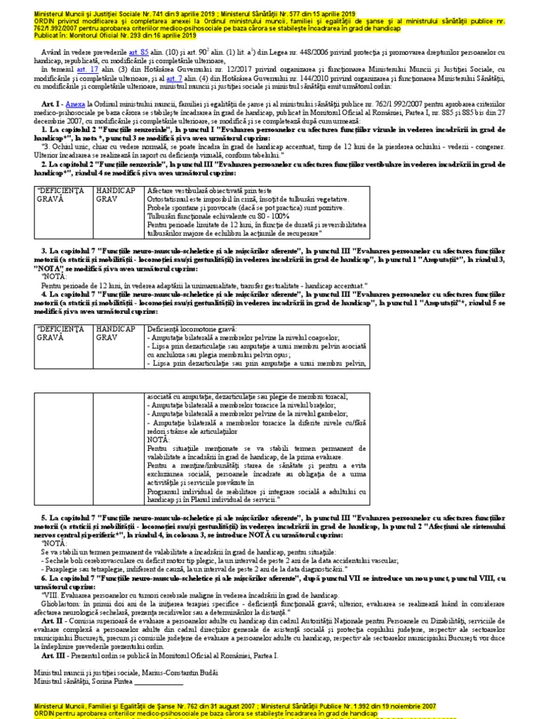 Ministrul muncii şi justiţiei sociale marius budăi a anunţat că urmează să fie emis un ordin prin care să existe posibilitatea eliberării de certificate permanente de încadrare în grad de handicap astfel încât persoanele care se află în astfel de situaţii să nu mai fie nevoite să se prezinte periodic la comisiile medicale de evaluare.