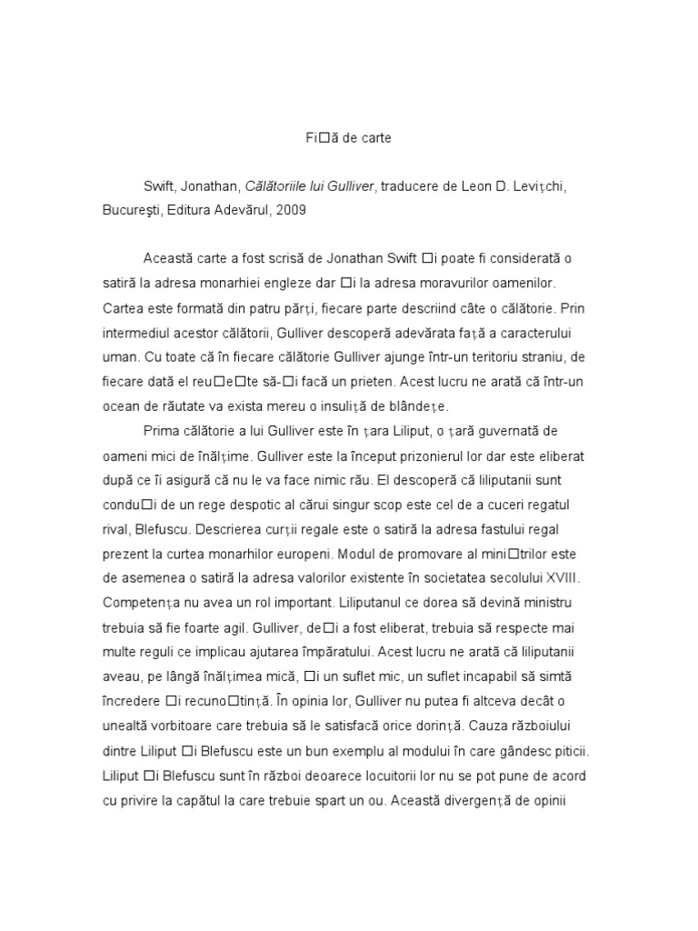 Calatoriile Lui Gulliver Fisa De Lectura