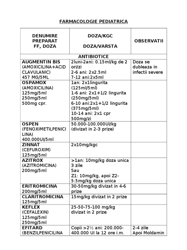 Calcul Doza Pe Kg Corp Augmentin Bis