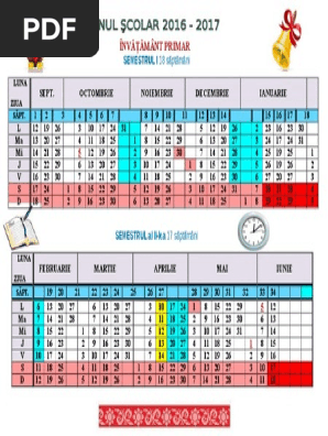 Structura anului scolar 2016 2017 calendar scolar semestrul i semestrul ii documente utile. Calendar scolar 2016 2017. 35 de săptămâni de cursuri. Calendar întocmit conform o m e n c s.
