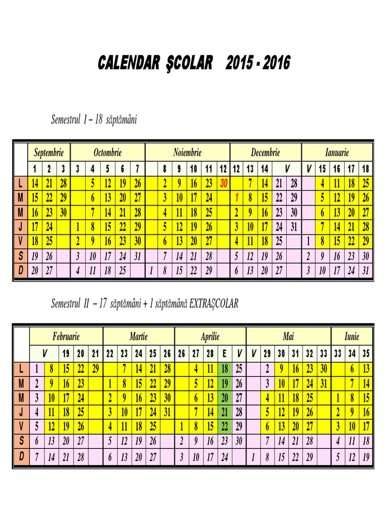 Elevii se vor bucura de o saptamana in plus de vacanta la iarna dar vor termina scoala si cu o saptamana mai tarziu in iunie. Calendar scolar 2015 2016 dupa noua structura a anului scolar. Mary10 scoala generala florian porcius rodna. La clasele a xii a durata cursurilor este de 33 de săptămâni iar 4 săptămâni sunt dedicate desfășurarii bacalaureatului.